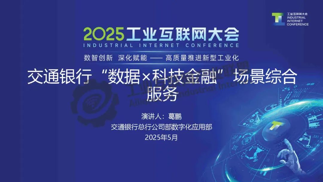 5月21日,在2025工業互聯網大會“工業互聯網產融合作專題活動”上,交通銀行公司機構業務部數字化應用部副高級經理葛鵬發表了《“數據X科技金融”接力式全場景綜合服務》的主題演講。