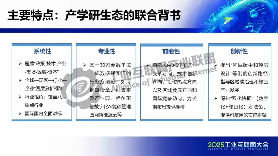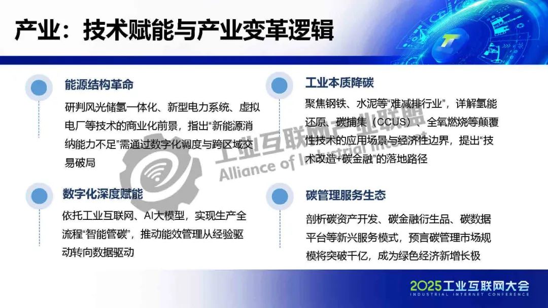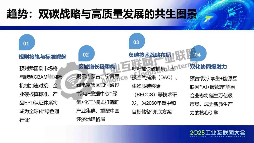 5月22日,在2025工業(yè)互聯(lián)網(wǎng)大會“工業(yè)數(shù)字化綠色化協(xié)同轉(zhuǎn)型專題活動”上,工業(yè)互聯(lián)網(wǎng)產(chǎn)業(yè)聯(lián)盟碳達(dá)峰碳中和工作組主席、中國信息通信研究院產(chǎn)業(yè)與規(guī)劃研究所總工程師高艷麗對《碳達(dá)峰碳中和藍(lán)皮書(2025)》進(jìn)行了解讀。