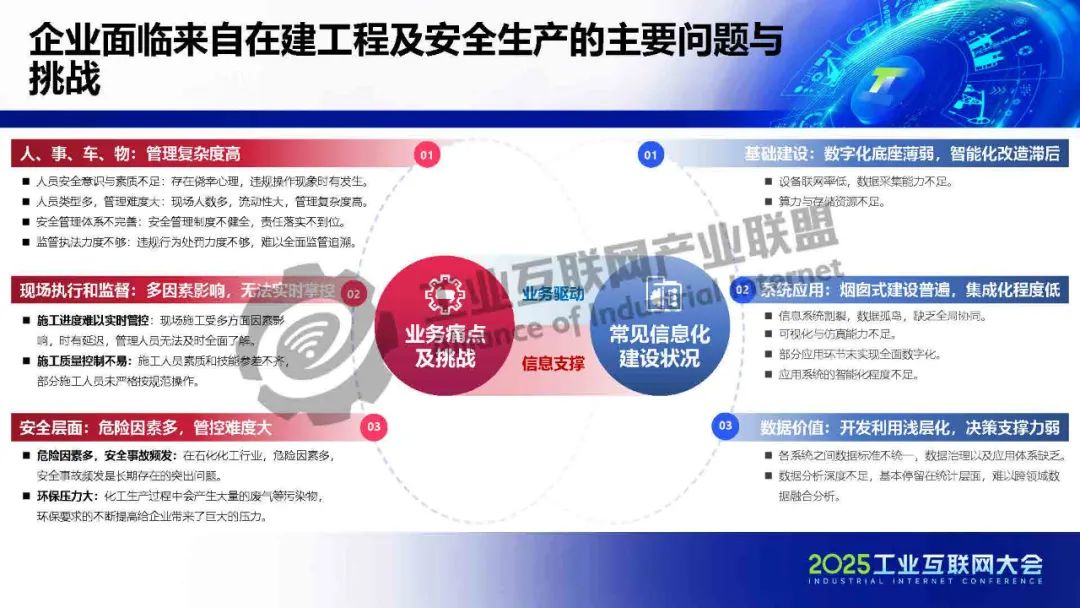 劉飛介紹,石油化工產(chǎn)業(yè)作為我國(guó)經(jīng)濟(jì)的支柱產(chǎn)業(yè),安全生產(chǎn)一直是其發(fā)展過程中的重要問題。我國(guó)化工行業(yè)正從 “分散粗放” 轉(zhuǎn)向 “園區(qū)集聚”,從 “高碳依賴” 轉(zhuǎn)向 “綠色低碳”,從 “技術(shù)跟隨” 轉(zhuǎn)向 “自主創(chuàng)新”。面向石化化工、建筑工程等具有安全風(fēng)險(xiǎn)的高危行業(yè),聚焦安全培訓(xùn)、綜合安防、特殊作業(yè)、風(fēng)險(xiǎn)分級(jí)管控、隱患排查治理、安全巡檢、施工質(zhì)量管控、施工進(jìn)度智能分析等企業(yè)安全管控、工程建設(shè)管理,提供咨詢、產(chǎn)品及軟件定制開發(fā)、物聯(lián)網(wǎng)終端硬件實(shí)施、數(shù)據(jù)集成服務(wù)、智能平臺(tái)、客戶化場(chǎng)景應(yīng)用服務(wù),深度覆蓋數(shù)字工地、安全生產(chǎn)等核心業(yè)務(wù)場(chǎng)景。