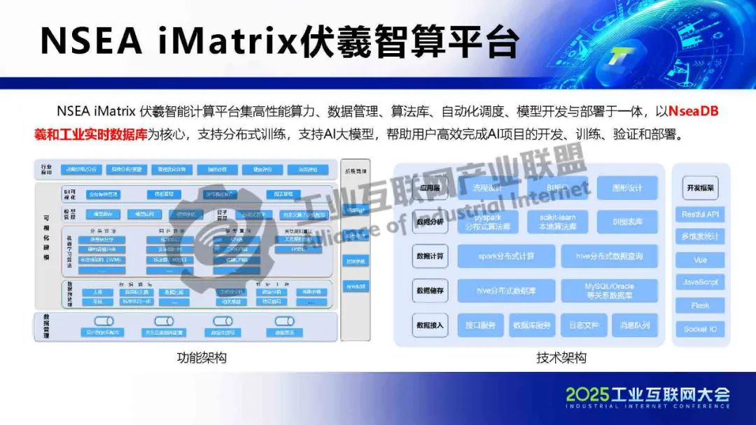 張東華介紹,NseaDB遵循工業(yè)領域軟件標準與規(guī)范,適應工業(yè)運行資源環(huán)境的限制,可在劃定的有限資源內(nèi)穩(wěn)定運行,運維便捷,有效保障業(yè)務系統(tǒng)安全可靠穩(wěn)定運行。NSEA iMatrix 伏羲智能計算平臺集高性能算力、數(shù)據(jù)管理、算法庫、自動化調(diào)度、模型開發(fā)與部署于一體,以NseaDB羲和工業(yè)實時數(shù)據(jù)庫為核心,支持分布式訓練,支持AI大模型,幫助用戶高效完成AI項目的開發(fā)、訓練、驗證和部署。