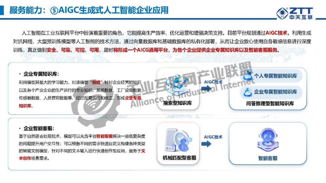 肖俊介紹,工業碼云平臺提供80+個營銷相關輕應用功能。融入低代碼開發平臺,所見即所得,一鍵生成,可以實現防偽、防竄貨、全流程追溯、售后質保、紅包促銷、積分營銷等功能。人工智能在工業互聯網平臺中扮演著重要的角色,它能提高生產效率、優化運營和增強決策支持。目前平臺規劃通過AIGC技術,利用生成對抗網絡、大型預訓練模型等人工智能的技術方法,通過向量數據庫和基礎數據庫的私有化部署,從而讓企業放心使用自身敏感信息進行深度訓練,真正做到安全、可靠、可控、可用,屆時將形成一個AICG通用平臺,為各個企業提供企業專屬知識庫以及智能客服服務。