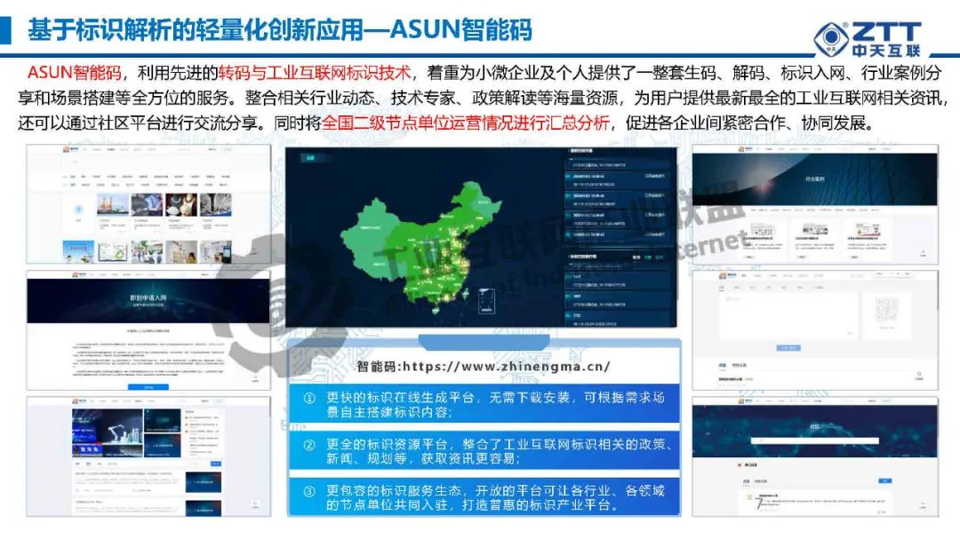 ASUN智能碼,利用先進的轉碼與工業互聯網標識技術,著重為小微企業及個人提供了一整套生碼、解碼、標識入網、行業案例分享和場景搭建等全方位的服務,可整合相關行業動態、技術專家、政策解讀等海量資源,為用戶提供最新最全的工業互聯網相關資訊,還可以通過社區平臺進行交流分享。
