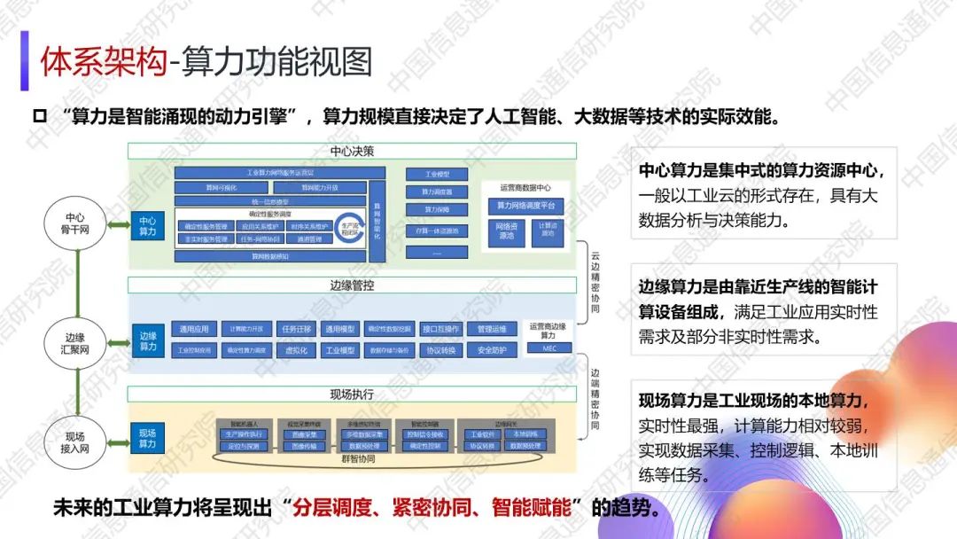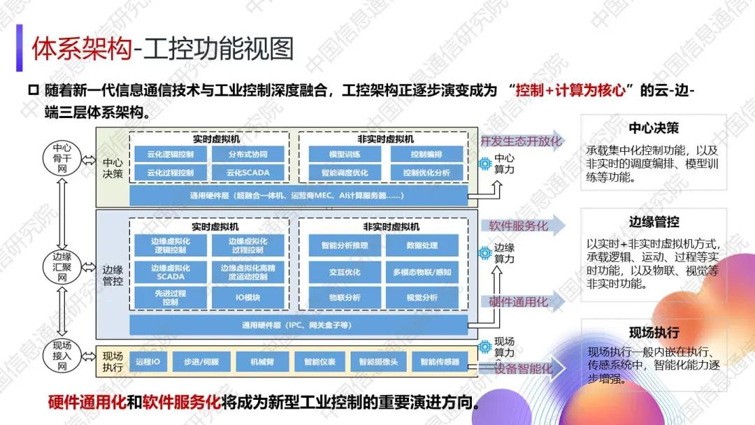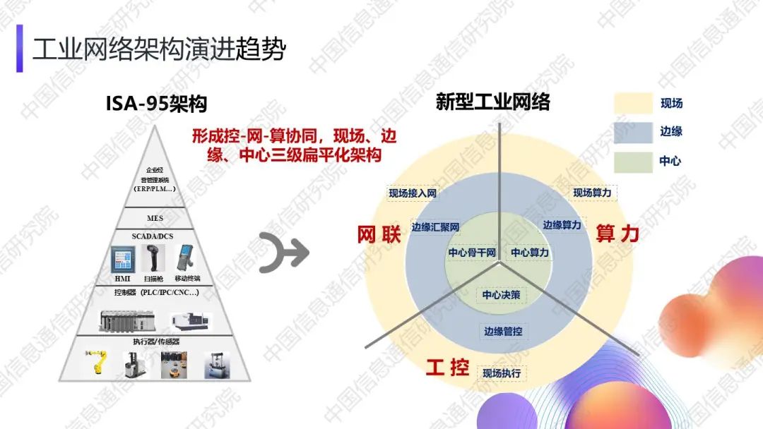 湯立波進(jìn)一步從工控、網(wǎng)聯(lián)、算力三大功能視角對(duì)新型工業(yè)網(wǎng)聯(lián)架構(gòu)進(jìn)行了詳細(xì)闡釋。對(duì)于未來(lái)發(fā)展趨勢(shì),湯立波表示,網(wǎng)聯(lián)三域?qū)⒊尸F(xiàn)出現(xiàn)場(chǎng)域異構(gòu)網(wǎng)絡(luò)融合、邊緣域高質(zhì)量承載網(wǎng)絡(luò)組合、中心域云化網(wǎng)絡(luò)協(xié)同的發(fā)展趨勢(shì),新型工業(yè)控制中硬件通用化和軟件服務(wù)化將成為重要演進(jìn)方向,工業(yè)算力將呈現(xiàn)出“分層調(diào)度、緊密協(xié)同、智能賦能”的趨勢(shì)。