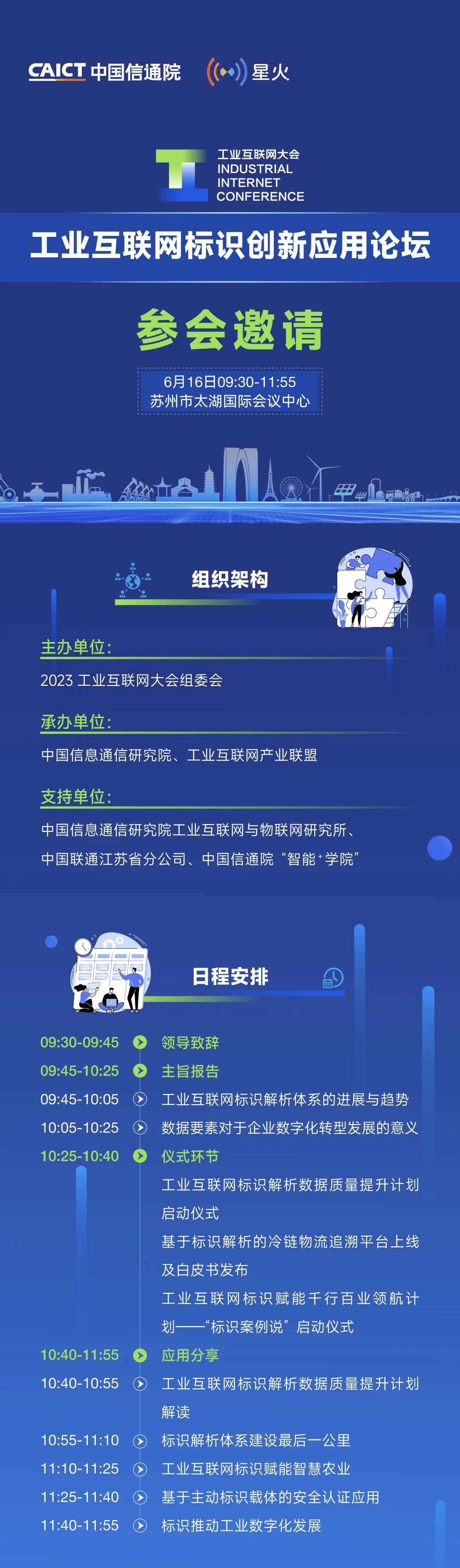 為貫徹黨的二十大精神,加快落實(shí)“十四五”規(guī)劃綱要關(guān)于“穩(wěn)妥發(fā)展工業(yè)互聯(lián)網(wǎng)”的相關(guān)要求,深入實(shí)施《工業(yè)互聯(lián)網(wǎng)創(chuàng)新發(fā)展行動(dòng)計(jì)劃(2021-2023年)》,大力推進(jìn)工業(yè)互聯(lián)網(wǎng)規(guī)模化應(yīng)用,促進(jìn)產(chǎn)業(yè)數(shù)字化轉(zhuǎn)型,為加速我國(guó)新型工業(yè)化發(fā)展提供關(guān)鍵支撐, 由工業(yè)和信息化部、江蘇省人民政府主辦,中國(guó)信息通信研究院、江蘇省工業(yè)和信息化廳、江蘇省通信管理局、蘇州市人民政府、工業(yè)互聯(lián)網(wǎng)產(chǎn)業(yè)聯(lián)盟、中國(guó)通信學(xué)會(huì)、中國(guó)互聯(lián)網(wǎng)協(xié)會(huì)聯(lián)合承辦的【2023工業(yè)互聯(lián)網(wǎng)大會(huì)】,將于2023年6月14-16日在江蘇省蘇州市舉辦,本次大會(huì)由開(kāi)幕式、高峰對(duì)話、高端論壇、學(xué)術(shù)大會(huì)、成果報(bào)告會(huì)、成果展示、現(xiàn)場(chǎng)調(diào)研、企業(yè)路演等40余場(chǎng)豐富的產(chǎn)業(yè)活動(dòng)組成。