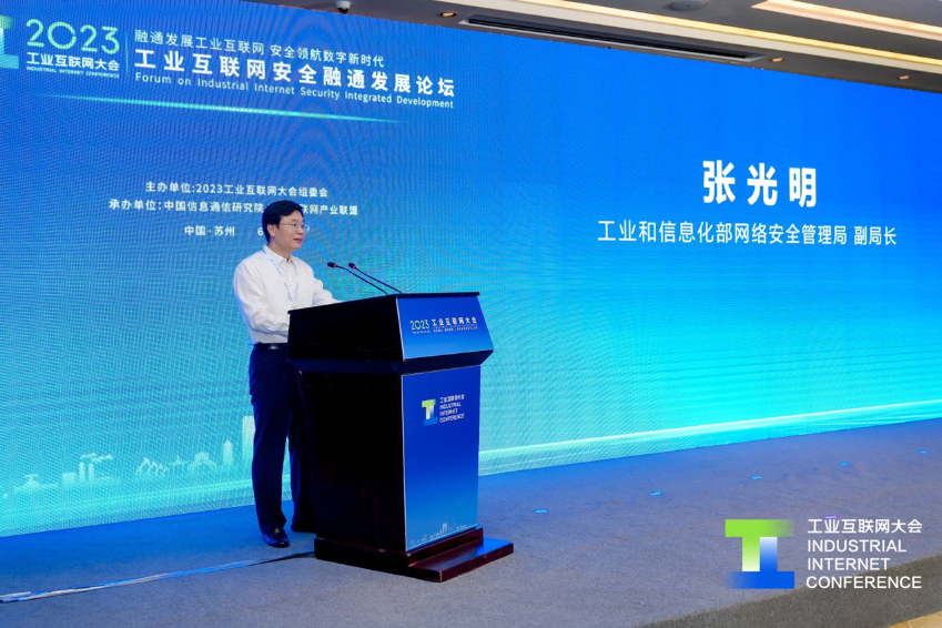 2023年6月16日上午,以“融通發(fā)展工業(yè)互聯(lián)網(wǎng) 安全領(lǐng)航數(shù)字新時(shí)代”為主題的2023工業(yè)互聯(lián)網(wǎng)大會(huì)——工業(yè)互聯(lián)網(wǎng)安全融通發(fā)展論壇在蘇州舉行。論壇由工業(yè)和信息化部和江蘇省人民政府主辦、中國(guó)信息通信研究院(以下簡(jiǎn)稱(chēng)“中國(guó)信通院”)和工業(yè)互聯(lián)網(wǎng)產(chǎn)業(yè)聯(lián)盟承辦,工業(yè)和信息化部網(wǎng)絡(luò)安全管理局副局長(zhǎng)張光明參加論壇并致辭,中國(guó)信通院黨委副書(shū)記王曉麗主持。