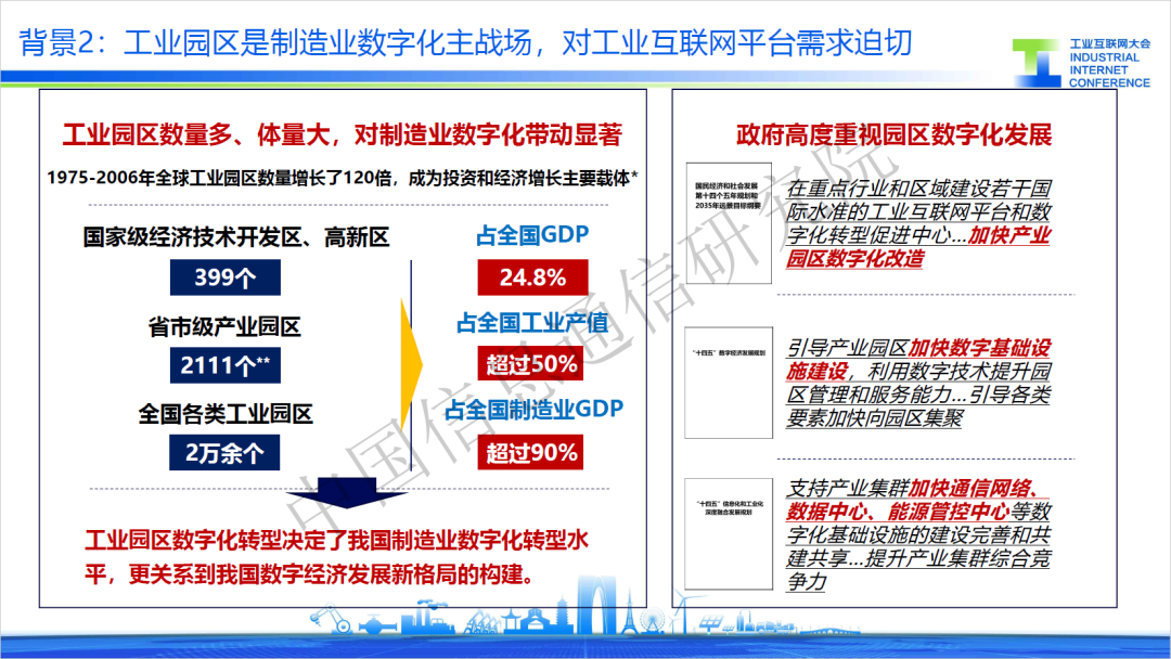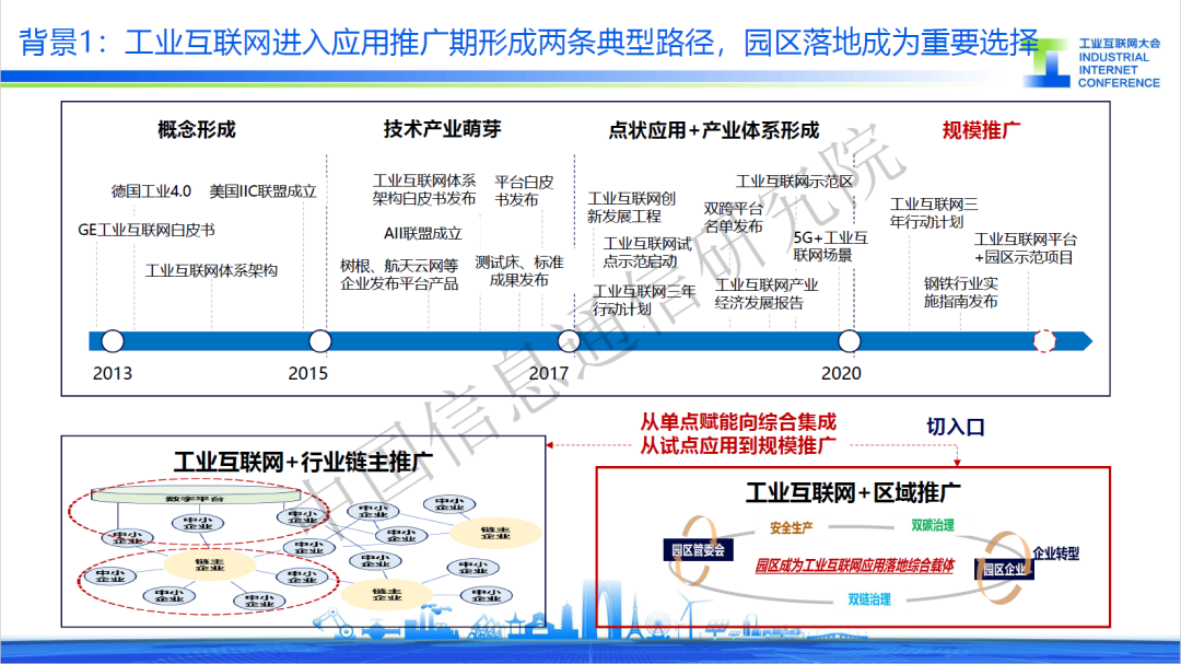 當(dāng)前,工業(yè)互聯(lián)網(wǎng)進入應(yīng)用推廣關(guān)鍵期,圍繞行業(yè)、區(qū)域形成了兩條推廣路徑,其中工業(yè)園區(qū)具有數(shù)量多、體量大的特點,對制造業(yè)數(shù)字化帶動效果顯著,已成為工業(yè)互聯(lián)網(wǎng)區(qū)域應(yīng)用落地的關(guān)鍵載體。