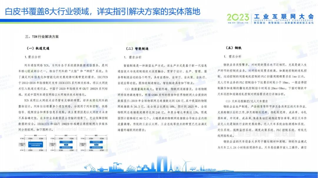 “TSN技術(shù)經(jīng)過(guò)18年的發(fā)展,在很多領(lǐng)域有了相關(guān)的應(yīng)用,但實(shí)際上真正形成批量和大面積的應(yīng)用還是比較少,急需要形成產(chǎn)業(yè)化應(yīng)用。在這種情況下,聯(lián)盟網(wǎng)絡(luò)組“時(shí)間敏感網(wǎng)絡(luò)(TSN)產(chǎn)業(yè)鏈名錄”計(jì)劃進(jìn)行了相關(guān)的測(cè)試,相關(guān)測(cè)試床產(chǎn)出了很多的成果。本書(shū)對(duì)TSN技術(shù)在軌道交通、智能制造、汽車(chē)車(chē)載、煤礦、鋼鐵、電力、裝備制造、港口8個(gè)行業(yè)的應(yīng)用進(jìn)行了介紹,不同行業(yè)的應(yīng)用特點(diǎn)不同。”