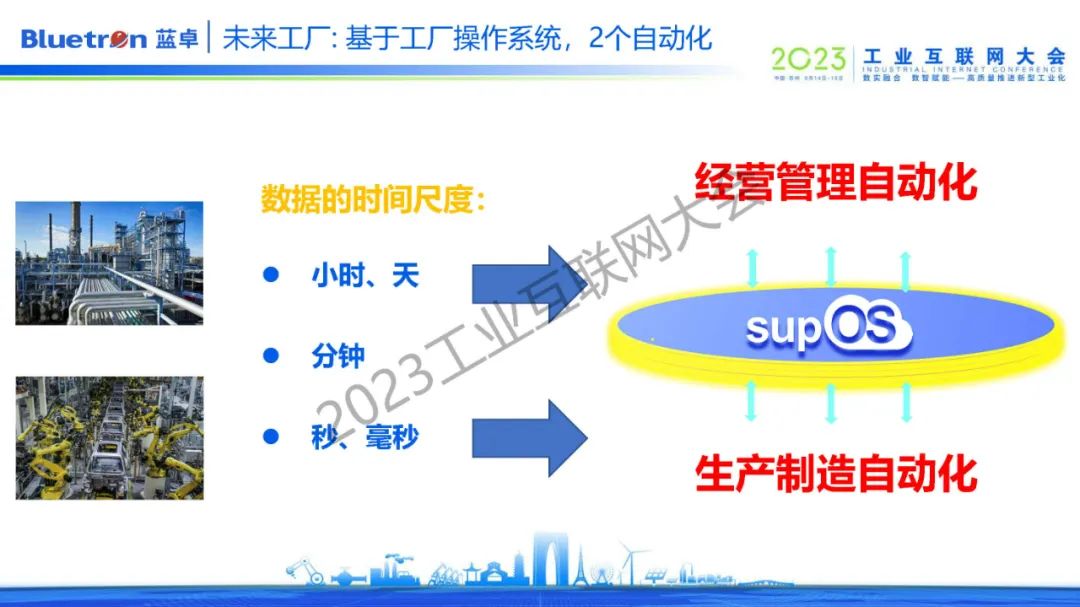 第一,打造行業標桿。藍卓暢想的未來工廠是基于supOS工業操作系統實現生產制造自動化和經營管理自動化的貫通,以此解決工業企業數據的問題,技術使用的問題。