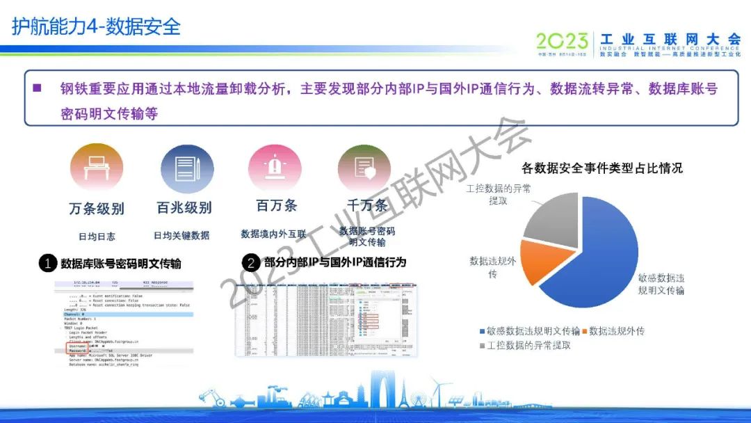 “鋼鐵重要應(yīng)用通過本地流量卸載分析,主要發(fā)現(xiàn)部分內(nèi)部IP與國外IP通信行為、數(shù)據(jù)流轉(zhuǎn)異常、數(shù)據(jù)庫賬號密碼明文傳輸?shù)取!?/p>