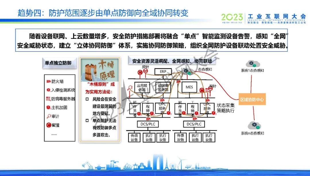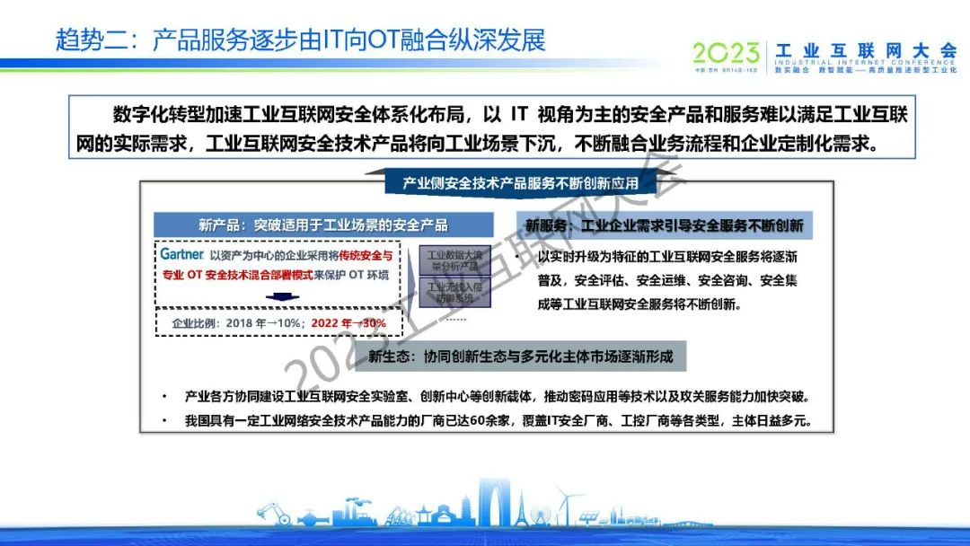 “數(shù)字化轉(zhuǎn)型加速工業(yè)互聯(lián)網(wǎng)安全體系化布局,以 IT 視角為主的安全產(chǎn)品和服務(wù)難以滿足工業(yè)互聯(lián)網(wǎng)的實際需求,工業(yè)互聯(lián)網(wǎng)安全技術(shù)產(chǎn)品將向工業(yè)場景下沉,不斷融合業(yè)務(wù)流程和企業(yè)定制化需求。”