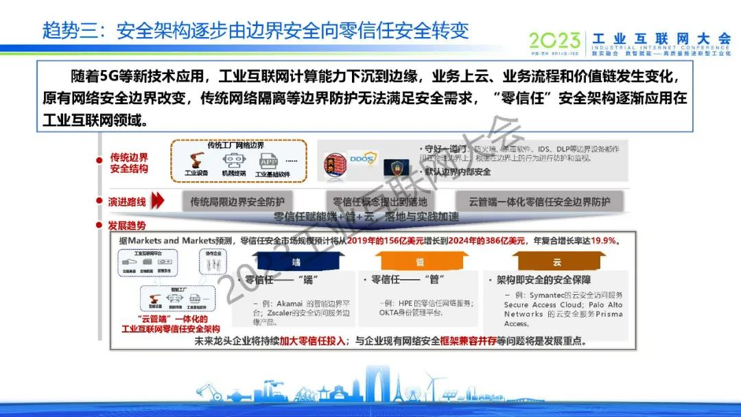 柯皓仁表示,工業(yè)互聯(lián)網(wǎng)在推動數(shù)字經(jīng)濟和實體經(jīng)濟深度融合過程中,其網(wǎng)絡(luò)安全能力既是基礎(chǔ)支撐,是實現(xiàn)高質(zhì)量發(fā)展的必要前提,也是賦能增量,是助推數(shù)字化進程的重要動能。數(shù)字化轉(zhuǎn)型加速工業(yè)互聯(lián)網(wǎng)安全體系化布局,以 IT 視角為主的安全產(chǎn)品和服務(wù)難以滿足工業(yè)互聯(lián)網(wǎng)的實際需求,工業(yè)互聯(lián)網(wǎng)安全技術(shù)產(chǎn)品將向工業(yè)場景下沉,不斷融合業(yè)務(wù)流程和企業(yè)定制化需求。