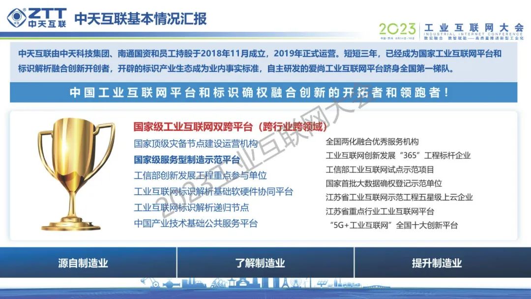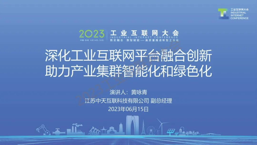 6月15日,在2023工業互聯網大會“工業互聯網平臺創新發展論壇”上,江蘇中天互聯科技有限公司副總經理黃詠青發表了《深化工業互聯網平臺融合創新 助力產業智能化與綠色發展》的演講。