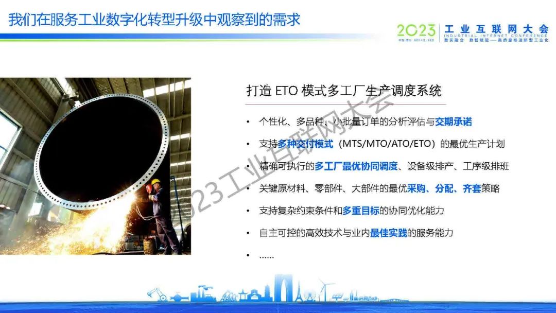 “裝備制造企業的數字化轉型就是打造 ETO 模式多工廠生產調度系統。它涵蓋了很多信息的抽象性需求描述,可能包括多品種,小批量訂單的交期承諾,可能包括個性化、多品種、小批量訂單的分析評估與交期承諾、支持多種交付模式(MTS/MTO/ATO/ETO)的最優生產計劃、精確可執行的多工廠最優協同調度、設備級排產、工序級排班等?!?/p>