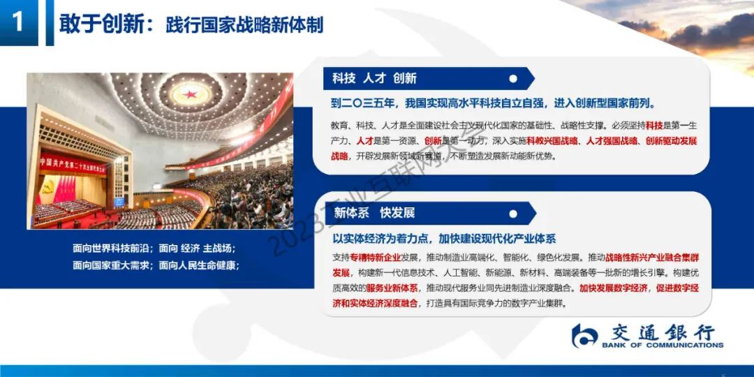 陳娟娟詳細地介紹了交通銀行在踐行國家戰略方面,服務創新發展方面做出的實踐,重點介紹了“6+3+7"的產品模式,幫助科創企業產品解決金融痛點和難點。