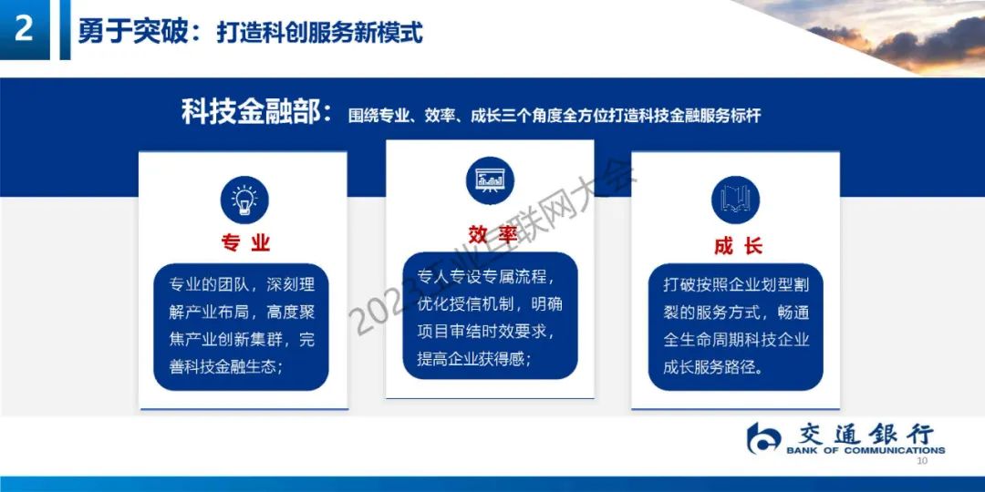 6月14日,在2023工業互聯網大會“工業互聯網產融推進論壇”上,交通銀行蘇州分行普惠金融事業部副總經理陳娟娟發表了《踐行“四敢精神”助力產業集群——“交銀科創 通達天下”科技金融產品路演》的主題演講。