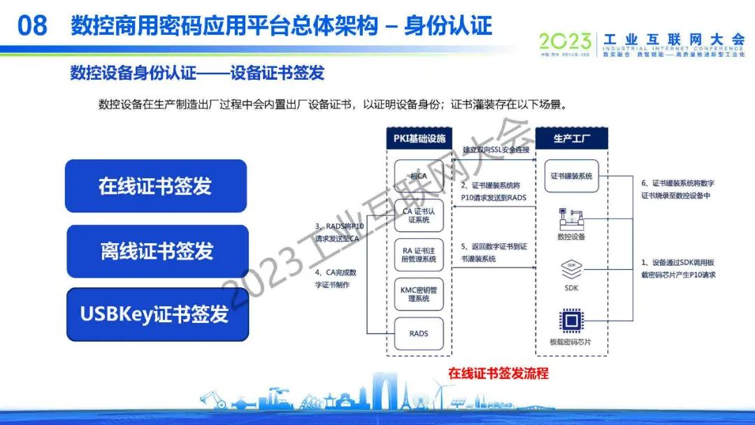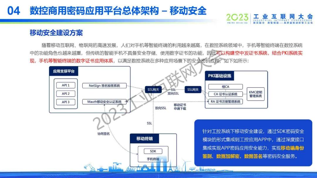 “隨著移動(dòng)互聯(lián)網(wǎng)、物聯(lián)網(wǎng)的高速發(fā)展,人們對(duì)手機(jī)等智能終端的利用越來(lái)越高,在數(shù)控系統(tǒng)領(lǐng)域中,手機(jī)等智能終端在數(shù)控系統(tǒng)中的功能角色也越來(lái)越重,但傳統(tǒng)的智能手機(jī)不具備安全存儲(chǔ)、使用數(shù)字證書(shū)的功能,因此可以構(gòu)建空中發(fā)證書(shū)系統(tǒng),結(jié)合PKI系統(tǒng)實(shí)現(xiàn),手機(jī)等智能終端的數(shù)字證書(shū)應(yīng)用體系,以滿足數(shù)控系統(tǒng)在多種應(yīng)用場(chǎng)景下的安全密碼應(yīng)用。”