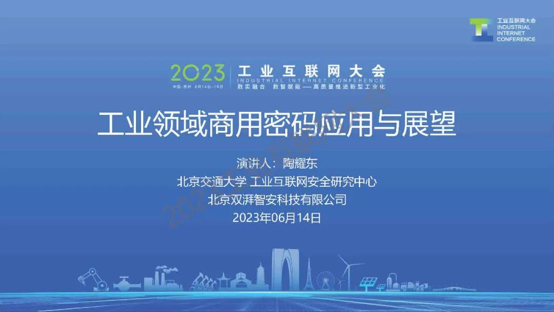 6月14日,在2023工業(yè)互聯(lián)網(wǎng)大會(huì)“工業(yè)互聯(lián)網(wǎng)密碼創(chuàng)新應(yīng)用論壇”上,北京交通大學(xué)工業(yè)互聯(lián)網(wǎng)安全研究中心主任陶耀東發(fā)表了《工業(yè)領(lǐng)域商用密碼應(yīng)用與展望》的主題演講。