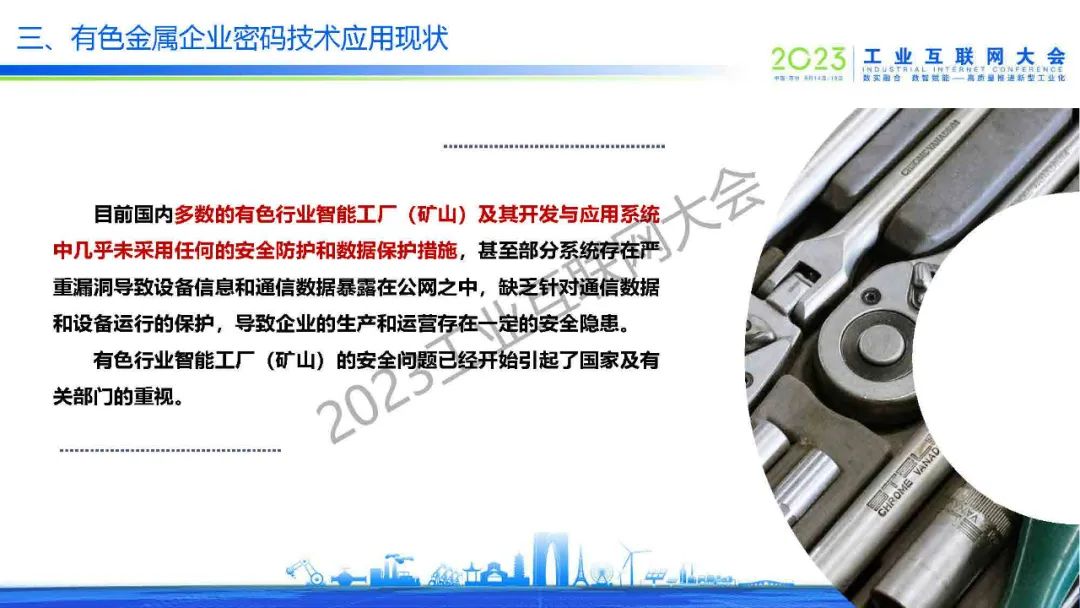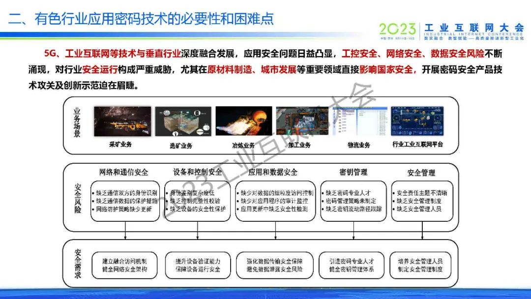 2023工業(yè)互聯(lián)網(wǎng)大會丨馬朝陽:有色金屬行業(yè)密碼技術(shù)應(yīng)用現(xiàn)狀與需求分析