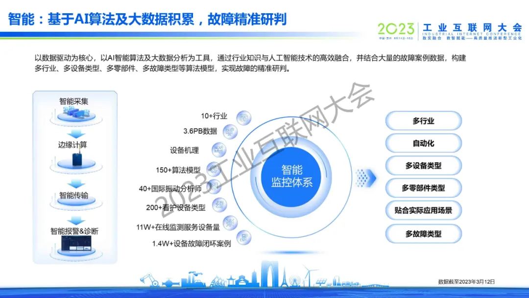 “以數據驅動為核心,以A智能算法及大數據分析為工具,通過行業知識與人工智能技術的高效融合,并結合大量的故障案例數據,構建多行業、多設備類型、多零部件、多故障類型等算法模型,實現故障的精準研判。”