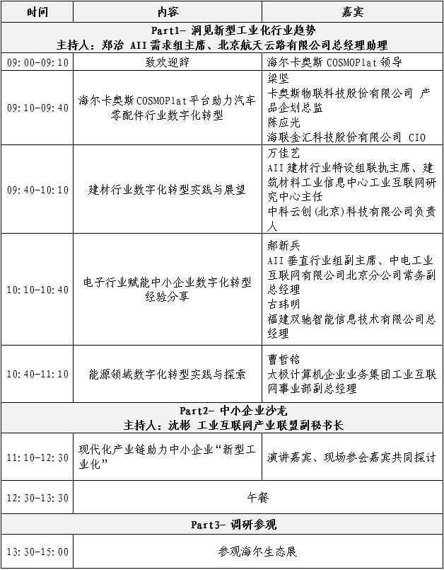 本月26日,AII將聯(lián)合海爾卡奧斯COSMOPlat共同舉辦“我為企業(yè)辦實事”系列活動——工業(yè)互聯(lián)網(wǎng)垂直行業(yè)融通創(chuàng)新沙龍。本次沙龍邀請到了家電行業(yè)、建材行業(yè)、電子行業(yè)、能源行業(yè)的代表企業(yè)卡奧斯、建材工業(yè)信息中心、中國電子、太極集團負(fù)責(zé)人分享行業(yè)經(jīng)驗,共同探討現(xiàn)代化產(chǎn)業(yè)鏈如何賦能中小企業(yè)“新型工業(yè)化”的熱門話題。活動安排具體如下:
