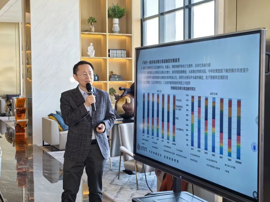 隨后,凱聯(lián)資本董事總經(jīng)理姬可鵬分享了最新的工業(yè)互聯(lián)網(wǎng)投融資趨勢。根據(jù)企名片庫數(shù)據(jù)分析,工業(yè)互聯(lián)網(wǎng)相關(guān)行業(yè)一級市場(上市前)的年融資規(guī)模從2017年的75億增長到>200億,2020-2022年持續(xù)保持在高位,融資主要集中在工業(yè)互聯(lián)網(wǎng)平臺(tái)、機(jī)器人、物聯(lián)網(wǎng)硬件和電子元器件、自動(dòng)化設(shè)備方面。姬總表示,凱聯(lián)資本未來的重點(diǎn)投資方向?qū)⒓性诖蛲ㄔO(shè)計(jì)和制造全流程的工業(yè)軟件和平臺(tái)、新一代的數(shù)字化智能制造裝備,以及打通上下游、實(shí)現(xiàn)高效協(xié)作的供應(yīng)鏈軟件和平臺(tái)。