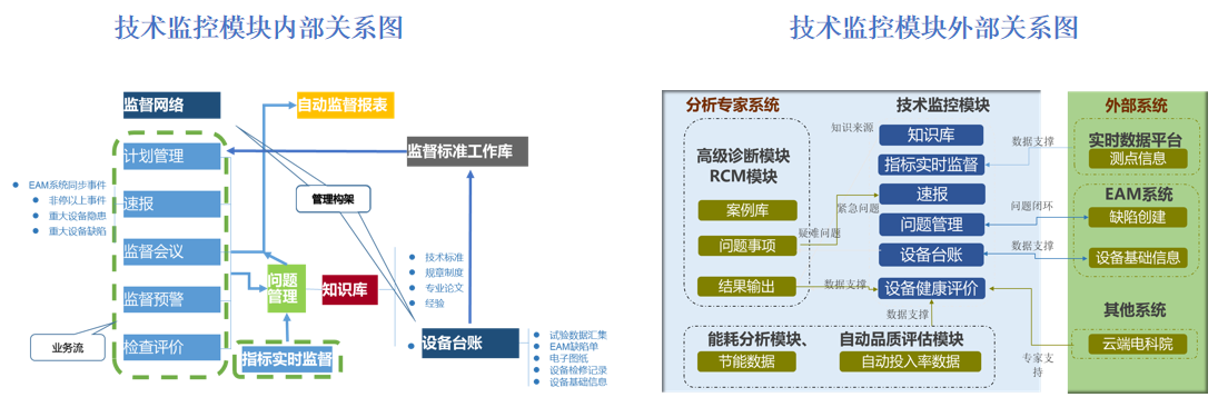 技術(shù)監(jiān)控模塊將傳統(tǒng)的技術(shù)監(jiān)督工作與線上數(shù)據(jù)相結(jié)合,創(chuàng)造性地提升了固有的技術(shù)監(jiān)督模式。模塊提供專業(yè)知識(shí)、資料支持;自動(dòng)生成各項(xiàng)監(jiān)督任務(wù)并實(shí)現(xiàn)全程管理;通過(guò)采集數(shù)據(jù)完善監(jiān)督指標(biāo)數(shù)據(jù)和實(shí)時(shí)告警體系;通過(guò)捕捉重點(diǎn)指標(biāo),在線分析重要設(shè)備的劣化趨勢(shì)狀態(tài);在線比對(duì)優(yōu)化機(jī)組啟動(dòng)過(guò)程數(shù)據(jù),在保證啟動(dòng)安全性的同時(shí),控制啟動(dòng)消耗;建立設(shè)備健康檔案,實(shí)現(xiàn)設(shè)備全壽命周期健康管理。保證機(jī)組處于健康狀態(tài),隨時(shí)準(zhǔn)備應(yīng)對(duì)升降負(fù)荷。一方面,提高項(xiàng)目公司運(yùn)行水平,另一方面提高機(jī)組設(shè)備監(jiān)測(cè)維護(hù)水平。