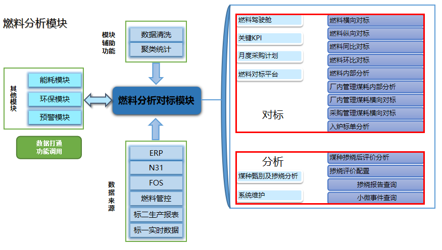 燃料分析模塊:指標(biāo)對(duì)比,降低管理煤耗;在線評(píng)價(jià)摻燒方案;給燃料采購(gòu)提供耗用量預(yù)測(cè)。
