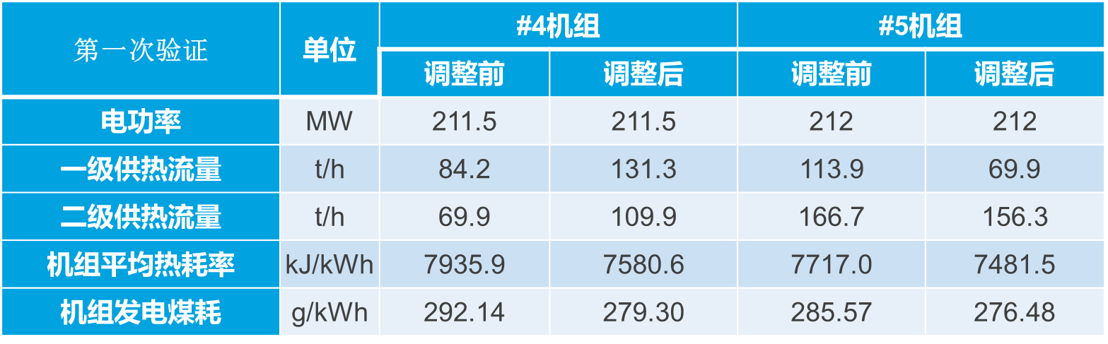 實(shí)時(shí)負(fù)荷分配模塊2019年8月22日在化工園的#4和#5機(jī)組進(jìn)行了實(shí)時(shí)負(fù)荷分配的試驗(yàn),分別進(jìn)行了單機(jī)電負(fù)荷210MW、230MW下供熱負(fù)荷轉(zhuǎn)移的實(shí)時(shí)負(fù)荷優(yōu)化效果驗(yàn)證。試驗(yàn)效果如下表所示,結(jié)果表明:扣除供熱變化因素,優(yōu)化節(jié)能量折合標(biāo)煤1.8t/h,210MW下供熱負(fù)荷轉(zhuǎn)移的試驗(yàn)結(jié)果,優(yōu)化后的約合全廠發(fā)電煤耗下降4.25g/kWh,230MW下供熱負(fù)荷轉(zhuǎn)移的試驗(yàn)結(jié)果表明,優(yōu)化后的約合全廠發(fā)電煤耗下降2.05g/kWh。實(shí)際節(jié)能量根據(jù)負(fù)荷、工況不同,較平均分配有1~5g/kWh的下降。