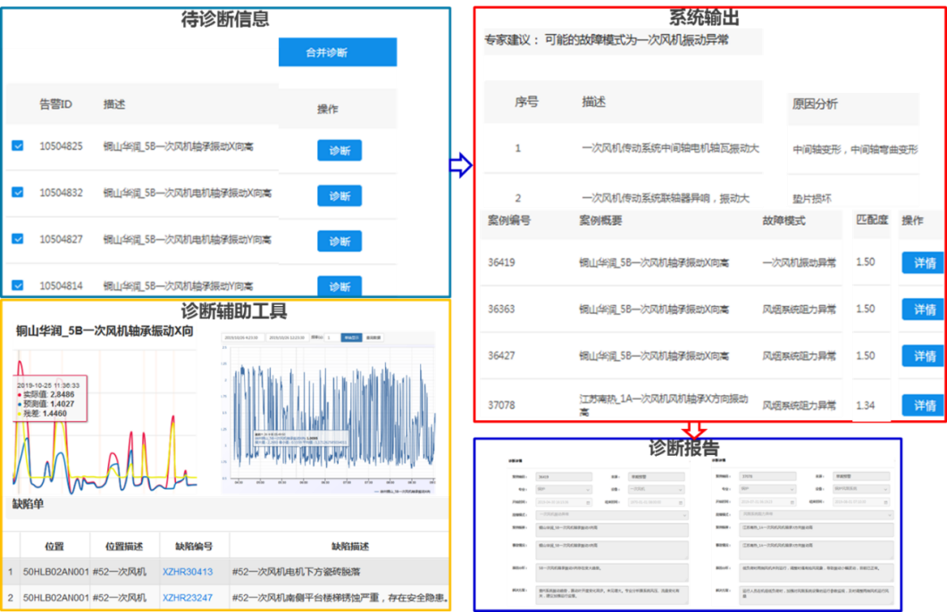 除了發(fā)現(xiàn)潛在的問題外,系統(tǒng)還希望能夠幫助技術(shù)人員進(jìn)一步找出“病因”并開出“藥方”。高級(jí)診斷模塊中采用了自然語(yǔ)言處理(NLP)、詞向量、傳感器數(shù)據(jù)分析(SDA)等智能診斷技術(shù)的最新成果,以“中西醫(yī)結(jié)合”的方法實(shí)現(xiàn)對(duì)故障的診斷,并推薦以往處理方案。目前的診斷成功率超過(guò)85%,通過(guò)診斷系統(tǒng)的應(yīng)用,形成華潤(rùn)電力統(tǒng)一的知識(shí)庫(kù),使知識(shí)得以分享和傳承。