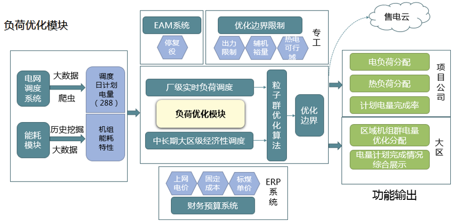 負(fù)荷優(yōu)化模塊:區(qū)域、廠內(nèi)電負(fù)荷、熱負(fù)荷優(yōu)化調(diào)度,減少整體煤耗。