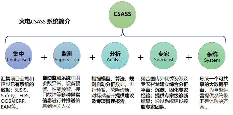 1、 華潤(rùn)電力在多年的企業(yè)發(fā)展過(guò)程中,形成了“火電為主、控制上下游、多業(yè)態(tài)協(xié)同、實(shí)現(xiàn)低成本競(jìng)爭(zhēng)”的發(fā)展模式。在新的市場(chǎng)競(jìng)爭(zhēng)條件下,華潤(rùn)電力迫切需要推進(jìn)創(chuàng)新轉(zhuǎn)型發(fā)展,打造企業(yè)核心競(jìng)爭(zhēng)力。火電 CSASS 分析專家系統(tǒng)是華潤(rùn)電力落實(shí)集團(tuán)“華潤(rùn)匯”戰(zhàn)略,打造行業(yè)安全可靠生產(chǎn)、高效運(yùn)行、綠色環(huán)保的標(biāo)桿,構(gòu)建專業(yè)知識(shí)和能力高地,引領(lǐng)行業(yè)業(yè)務(wù)模式創(chuàng)新的重要抓手。