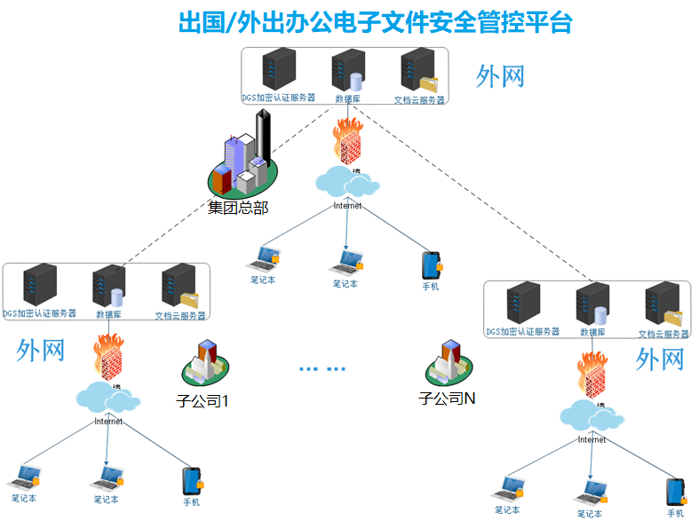 圖2 電子文件外出使用安全管控系統拓撲圖