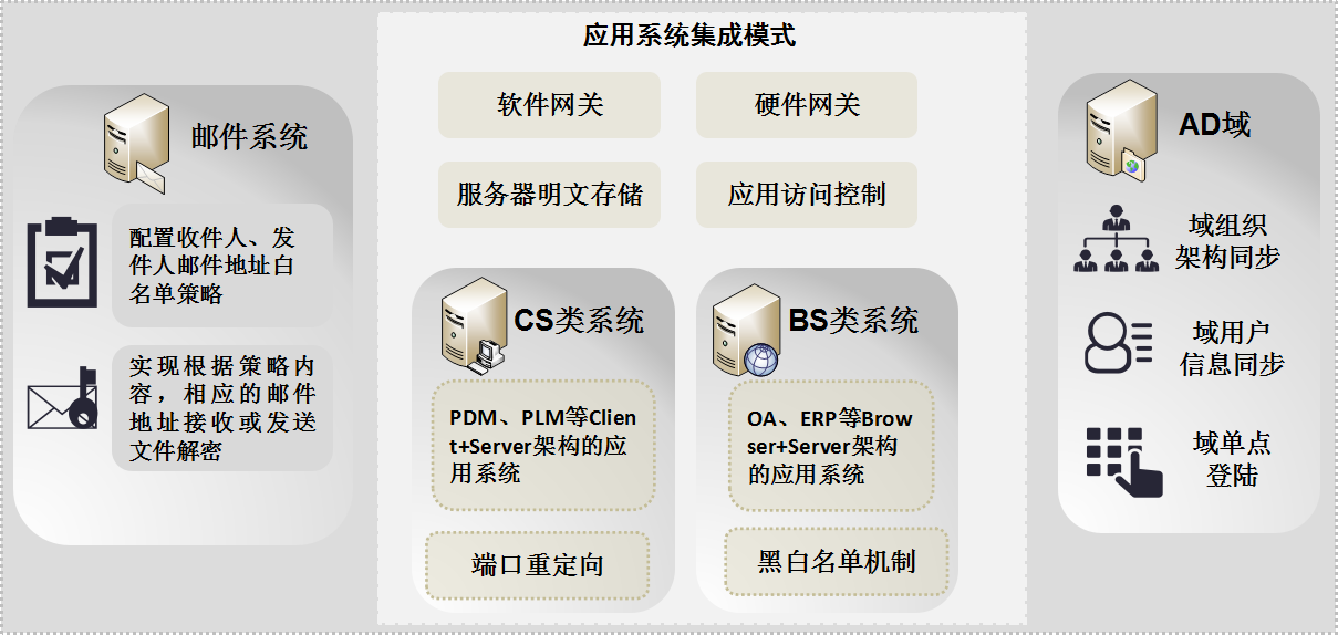(1)終端數據智能安全防護:包括數據智能安全子系統、終端虛擬化桌面子系統、終端桌面安全子系統、終端外設控制子系統、文件透明加密子系統等五個子系統,有效防止機密信息泄漏。