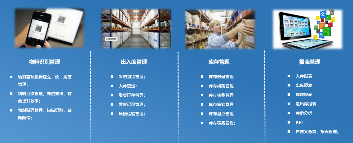 在庫存管理場景中,具備物料識別、出入庫管理、庫存管理等功能。
