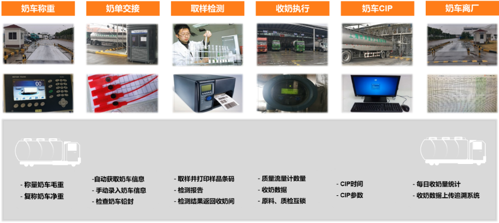 收奶過程自動化,有效幫助控制奶車在廠時間,控制原奶質量,提升收奶效率。