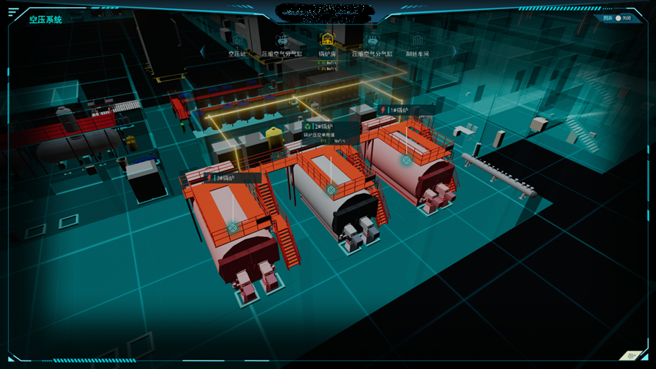 走向展示:基于廠房模型,展示全廠能源介質(zhì)總體流向及分布情況;